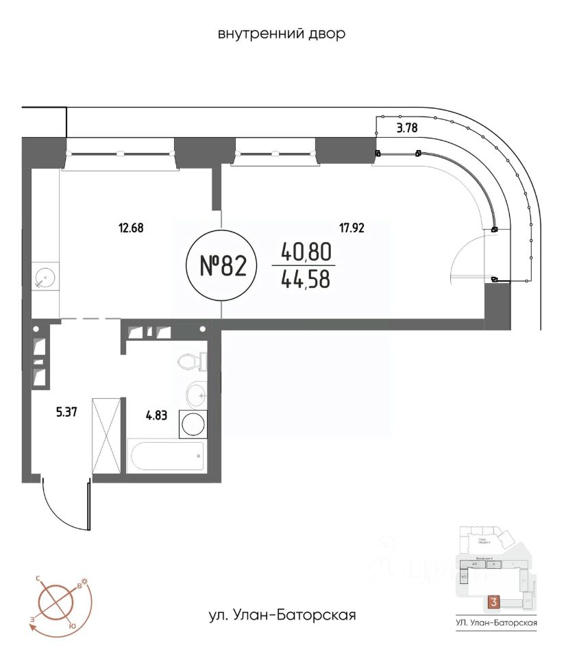 Продаётся 1-комнатная квартира в строящемся доме (Дом 3), срок сдачи: III-кв. 2029, общей площадью 44.58 кв.м., на 13 этаже. Мы начали с эталона - жилого комплекса Союз Priority, лучшего в России. А теперь представляем его логичное и яркое продолжение Союз Priority MAX.