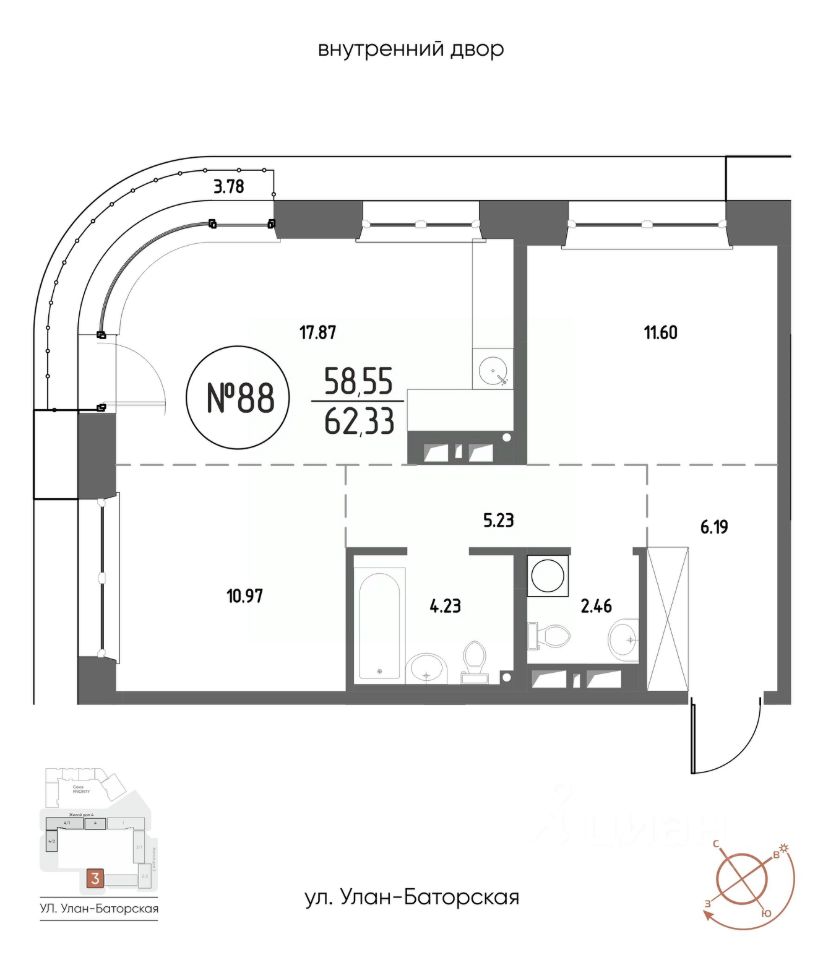 Продаётся 2-комнатная квартира в строящемся доме (Дом 3), срок сдачи: III-кв. 2029, общей площадью 62.33 кв.м., на 14 этаже. Мы начали с эталона - жилого комплекса Союз Priority, лучшего в России. А теперь представляем его логичное и яркое продолжение Союз Priority MAX.