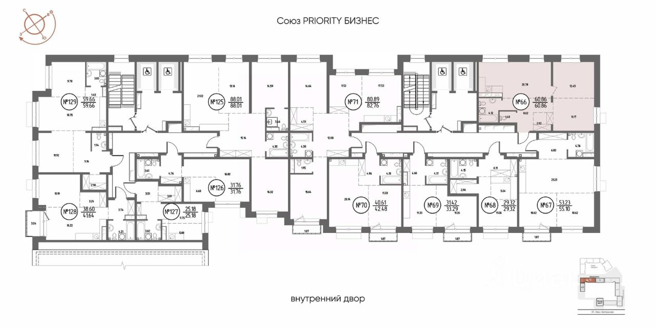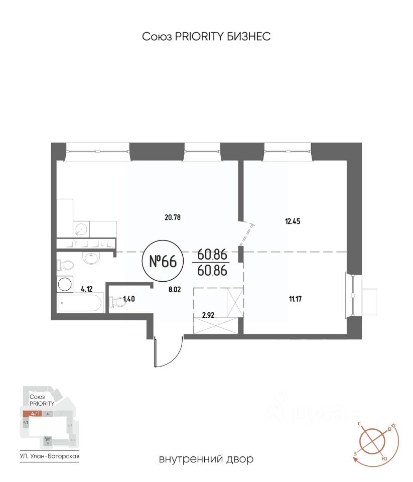 Продаётся 2-комнатная квартира в строящемся доме (Дом 4), срок сдачи: III-кв. 2029, общей площадью 60.86 кв.м., на 13 этаже. Мы начали с эталона - жилого комплекса Союз Priority, лучшего в России. А теперь представляем его логичное и яркое продолжение Союз Priority MAX.