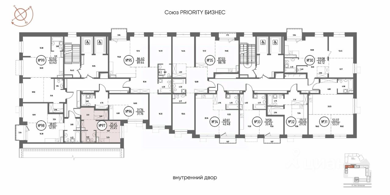 Продаётся 1-комнатная квартира в строящемся доме (Дом 4), срок сдачи: III-кв. 2029, общей площадью 25.45 кв.м., на 7 этаже. Мы начали с эталона - жилого комплекса Союз Priority, лучшего в России. А теперь представляем его логичное и яркое продолжение Союз Priority MAX.