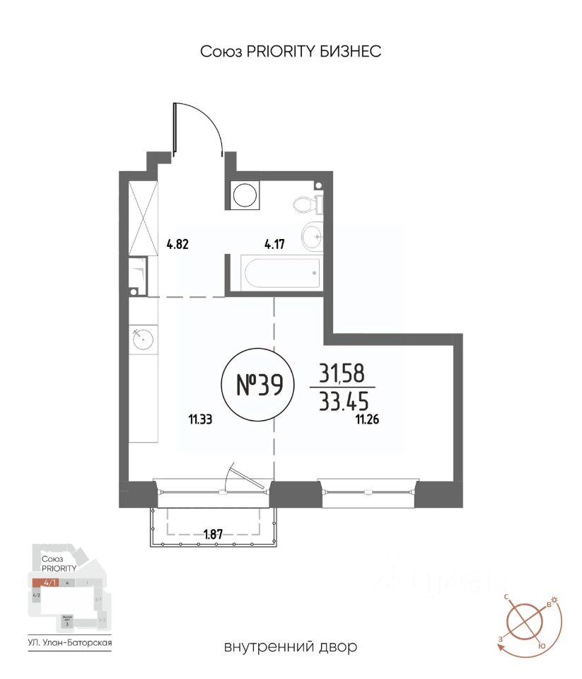Продаётся 1-комнатная квартира в строящемся доме (Дом 4), срок сдачи: III-кв. 2029, общей площадью 33.45 кв.м., на 8 этаже. Мы начали с эталона - жилого комплекса Союз Priority, лучшего в России. А теперь представляем его логичное и яркое продолжение Союз Priority MAX.
