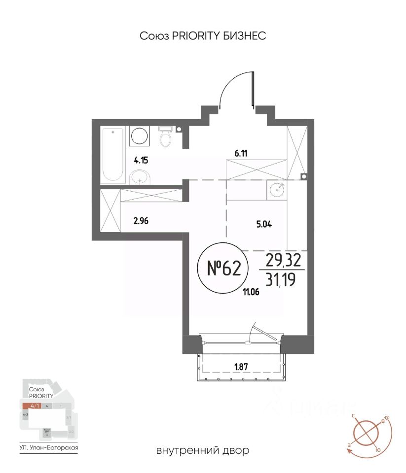 Продаётся студия в строящемся доме (Дом 4), срок сдачи: III-кв. 2029, общей площадью 31.19 кв.м., на 12 этаже. Мы начали с эталона - жилого комплекса Союз Priority, лучшего в России. А теперь представляем его логичное и яркое продолжение Союз Priority MAX.