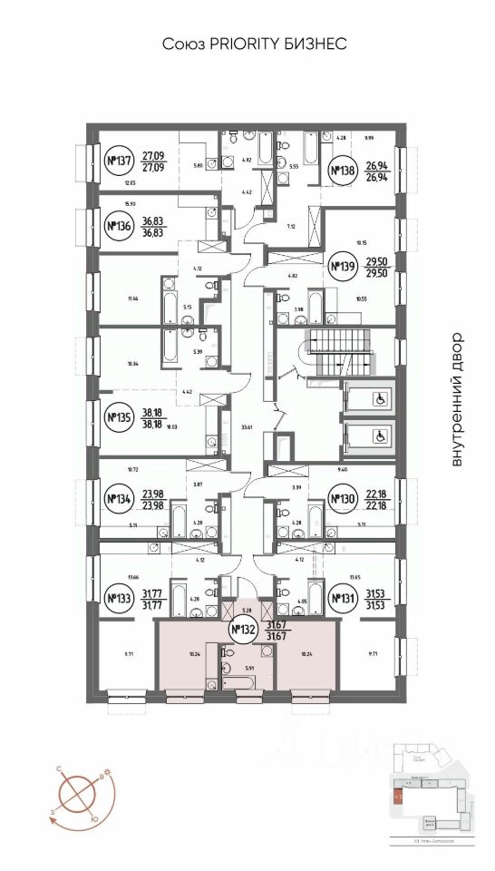 Продаётся 1-комнатная квартира в строящемся доме (Дом 4), срок сдачи: III-кв. 2029, общей площадью 31.67 кв.м., на 2 этаже. Мы начали с эталона - жилого комплекса Союз Priority, лучшего в России. А теперь представляем его логичное и яркое продолжение Союз Priority MAX.
