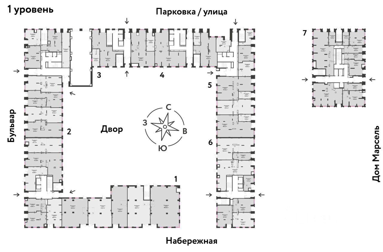 • площади от 22 м2 до 176 м2 • подходят под любой вид бизнеса, • помещения на первой линии, • окна — во двор или на бульвар, • панорамное остекление и высокие потолки, • в проектах есть готовые помещения.