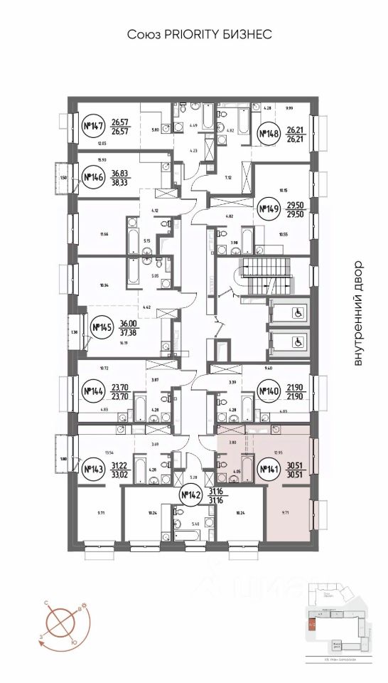 Продаётся 1-комнатная квартира в строящемся доме (Дом 4), срок сдачи: III-кв. 2029, общей площадью 30.51 кв.м., на 3 этаже. Мы начали с эталона - жилого комплекса Союз Priority, лучшего в России. А теперь представляем его логичное и яркое продолжение Союз Priority MAX.