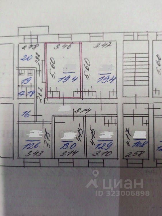 Планировка: площадь по выписке 19,4м2. Можно провести мокрую точку в комнату. Кухня в секции площадью 6,8м2, плюс балкон (смотрите схему). Санузел раздельный. Высота потолков 2,58м. 5 этаж.