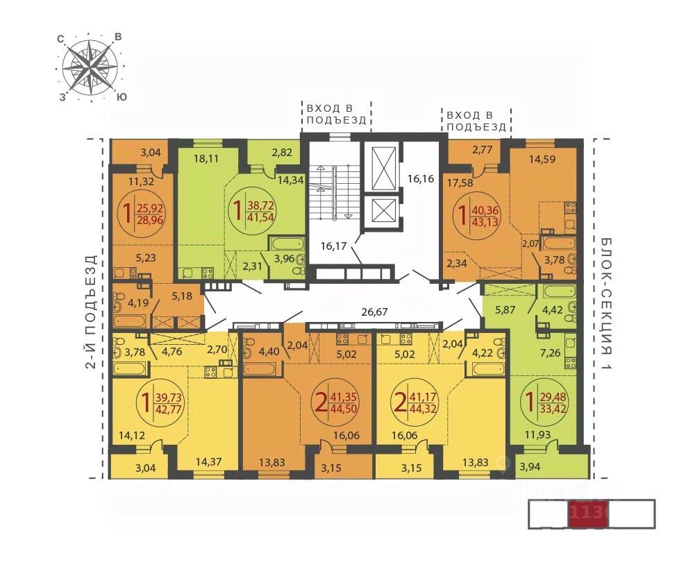 Общая площадь43,13 м2