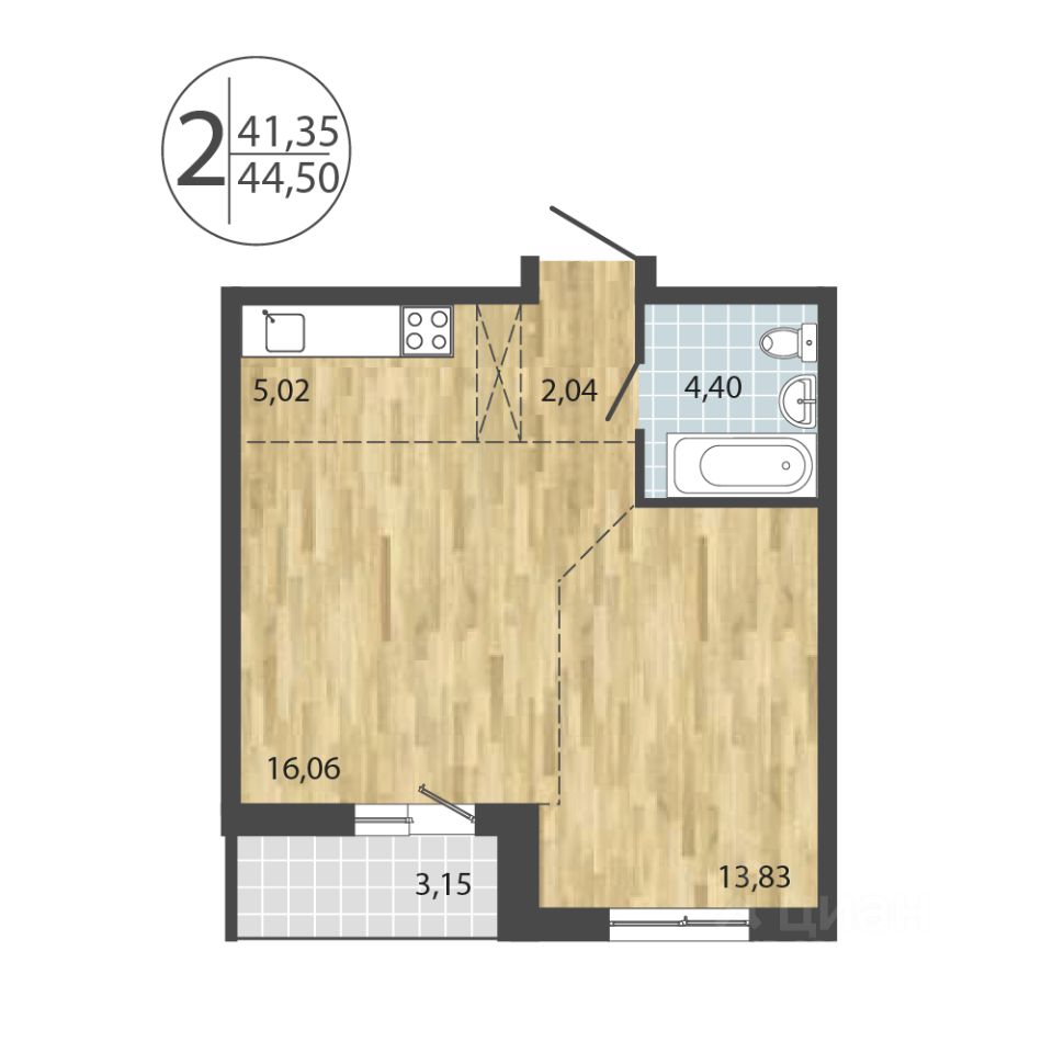 Общая площадь44,5 м2