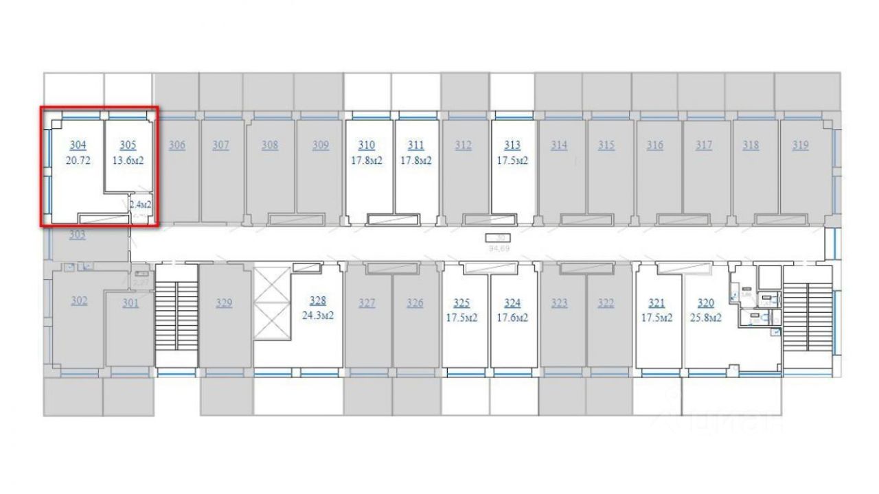 Блок-офис состоит из двух отдельных кабинетов 20.72 и 13.6 кв.м. в отдельной полусекции общего коридора!