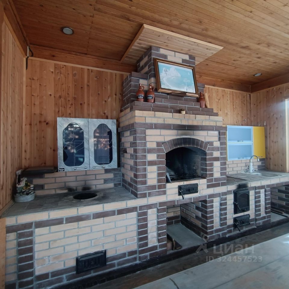 Сам дом с полной отделкой и техникой (ничего докупать не нужно). Беседка с зоной барбекю, оборудованная тандыром и русской печью. Теплица из поликарбоната. Насаждения (сосны).