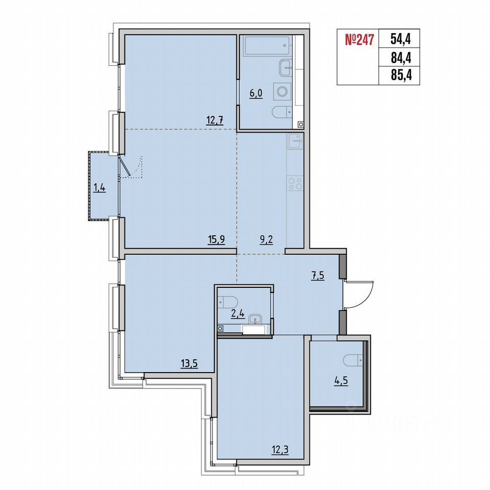 Общая площадь: 85.4 м²,