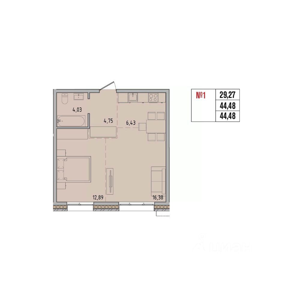 Общая площадь44,48 м2