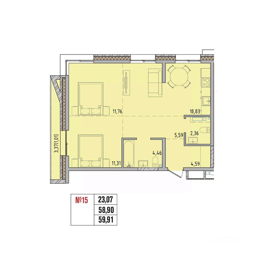 Жилая площадь23,1 м2