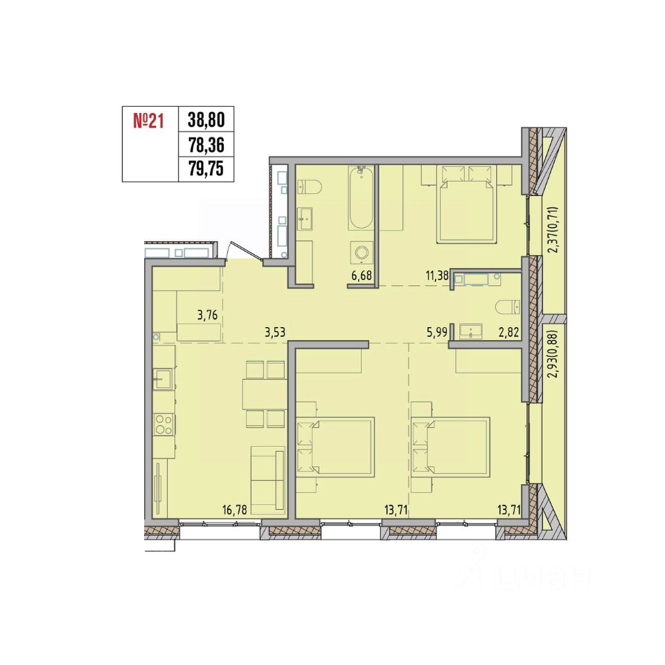 Общая площадь83,66 м2