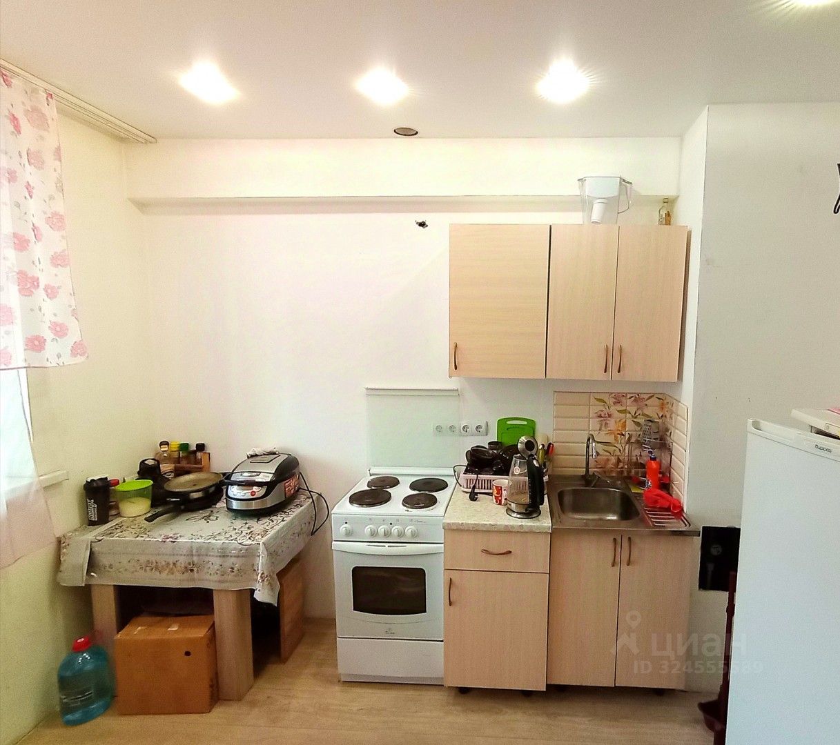 В квартире из мебели и техники остаётся всё, что на фото, кроме круглого стола на кухне.