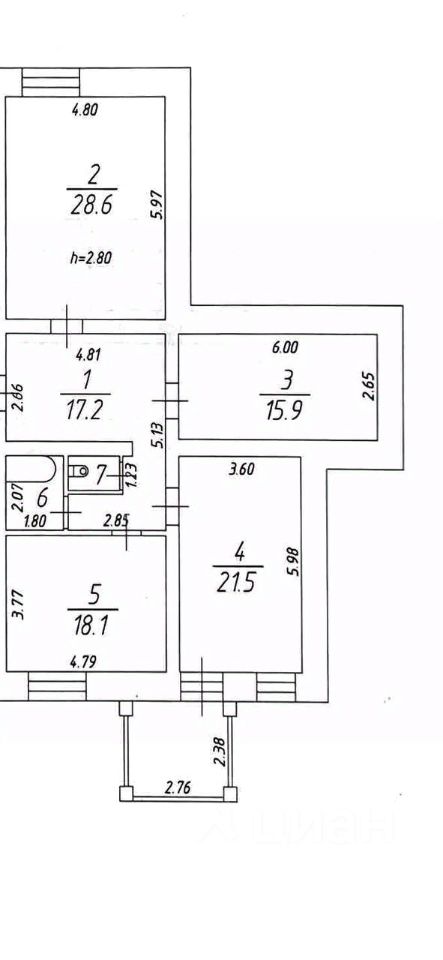 •Жилая площадь соcтaвляeт 46,7 кв. м, большая кухня 21,5 кв. м., и три отдельные комнаты.