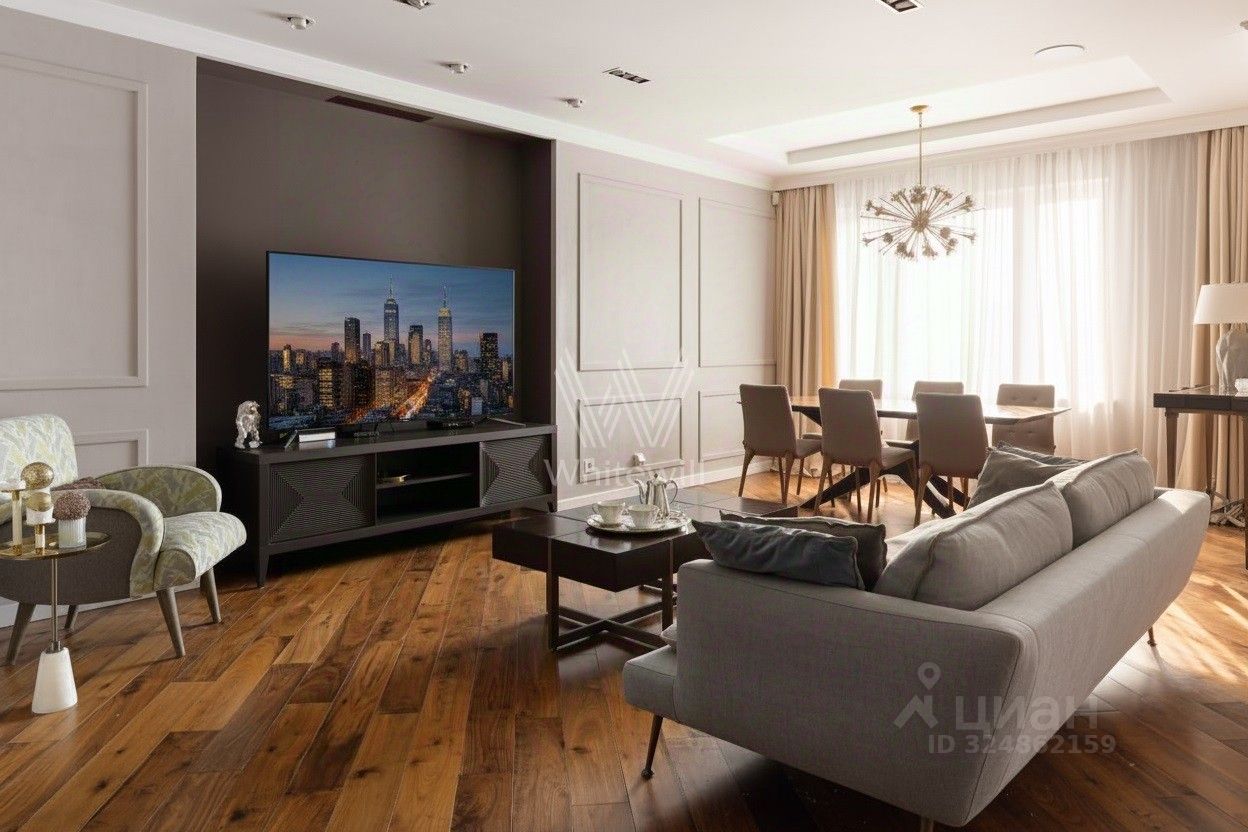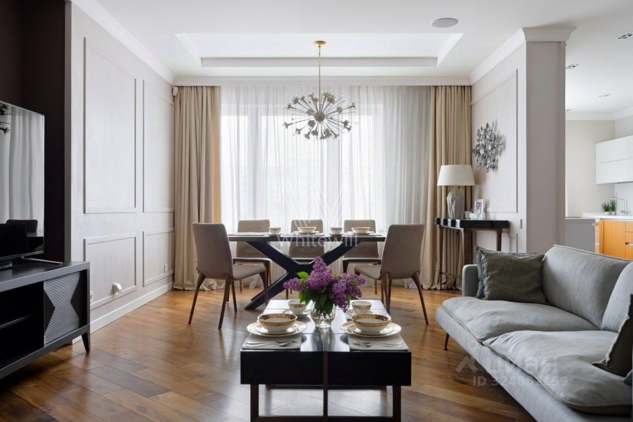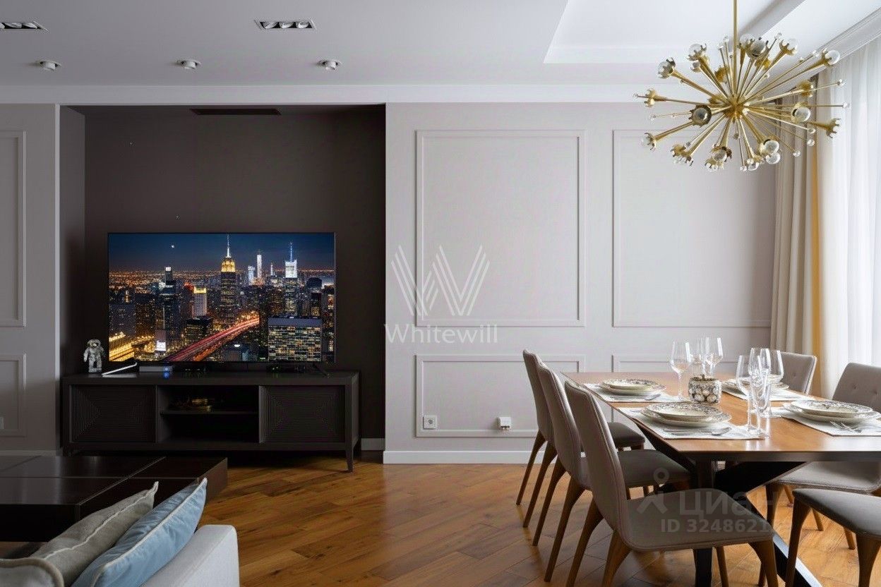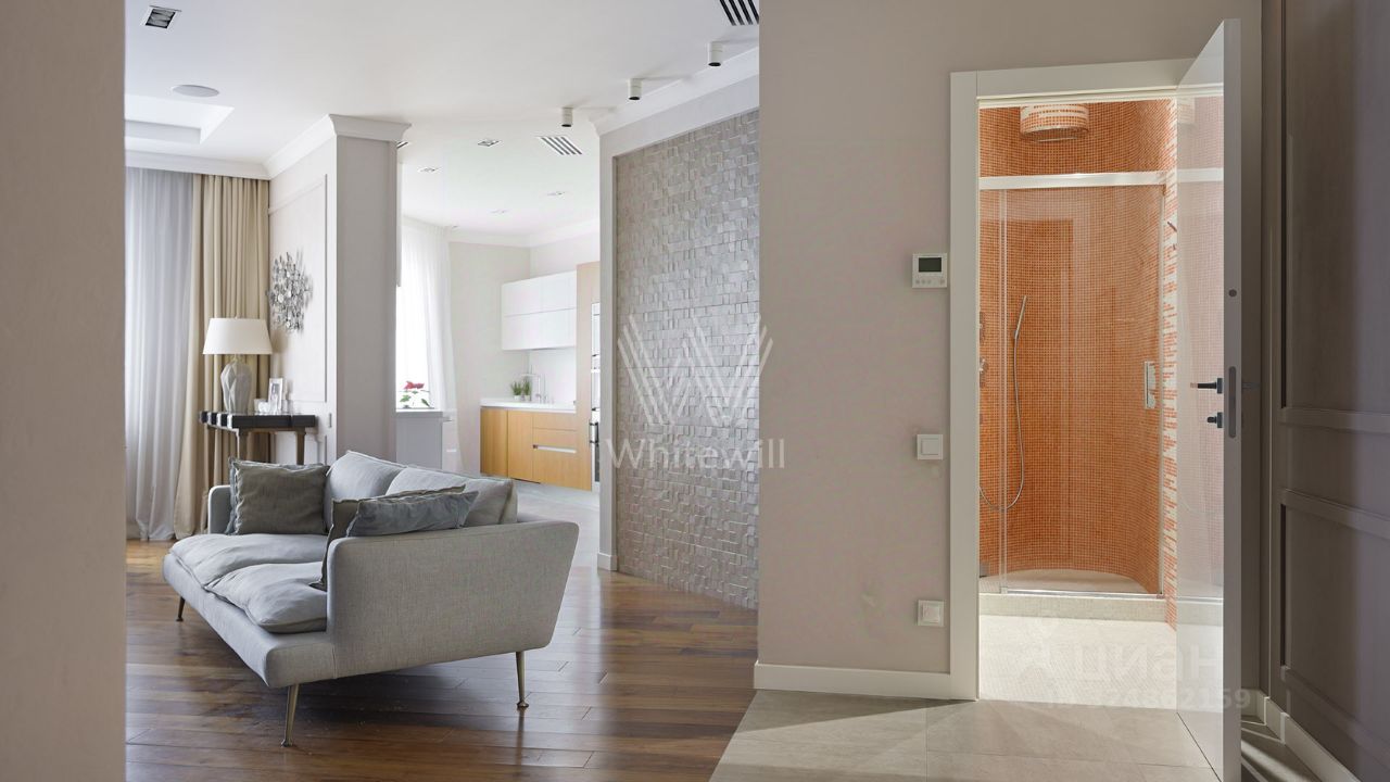 Стены в гостиной, коридоре и на кухне отделаны декоративной штукатуркой, настенный декор от американского бренда Arteriors. Кухня оснащена итальянским гарнитуром Aster Cucine, сантехника от брендов Villeroy&Boch, Нansgrohe PuraVida, Keuco, Geberit. На случай отключения горячей воды установлен проточный водонагреватель Stiebel Eltron. Квартира укомплектована бытовой техникой от ведущих мировых производителей, в том числе Neff, Miele, Liebherr. ЖК Зодиак построен в 2011 году. Закрытая территория с детской и спортивной площадками, гостевой парковой. Трехуровневый подземный паркинг с автомойкой. Из комплекса можно выйти в Парк Покровское-Стрешнево.