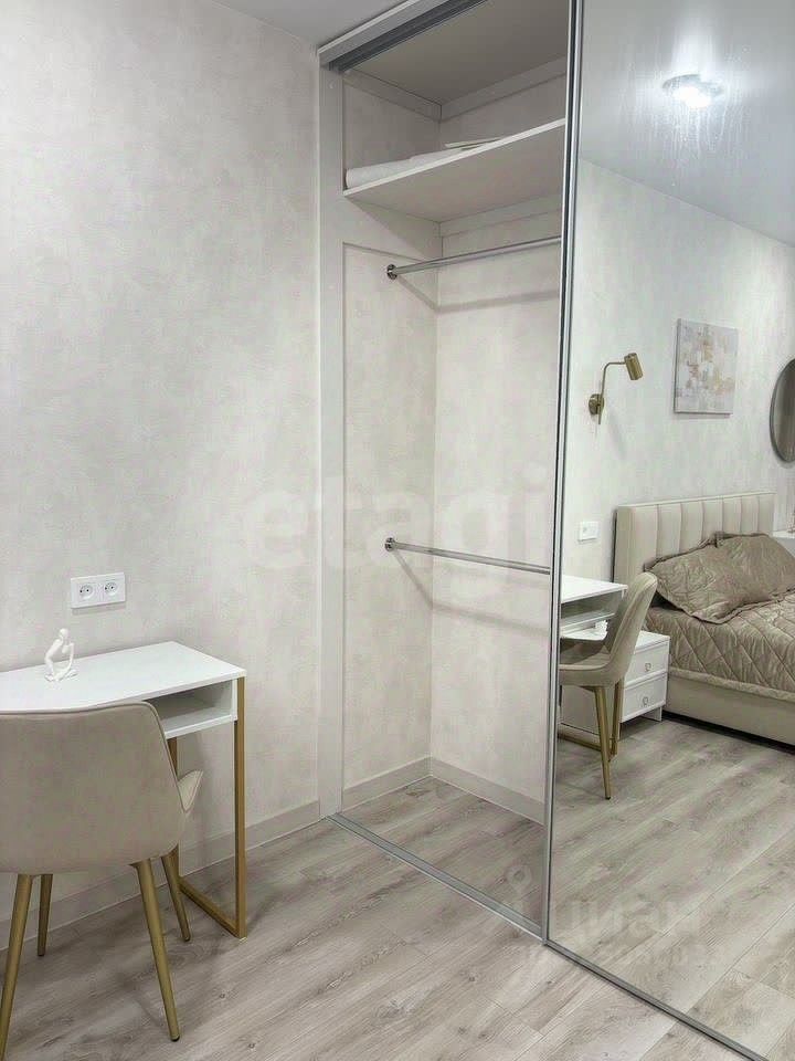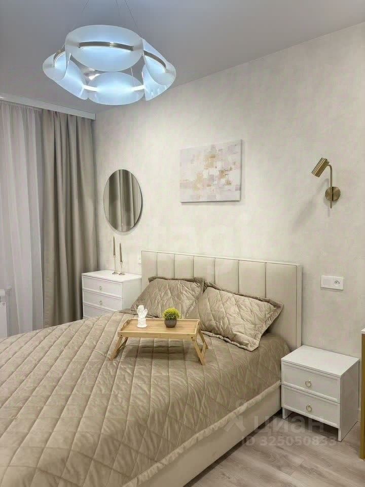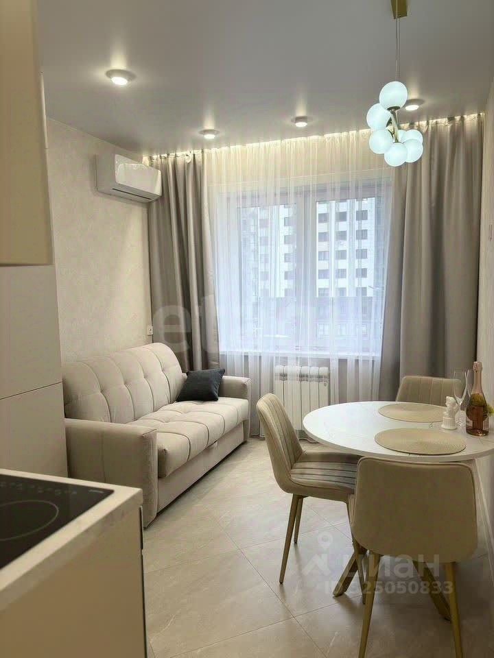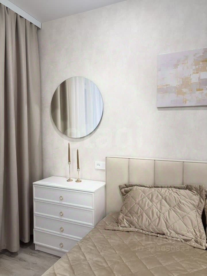 На полу в санузле, коридоре и кухне-гостиной керамогранит, в комнатах ламинат. Обеденная зона со столом и 4 стульями, диван раскладывается в полноценное спальное место (механизм аккордеон, гарантия производителя 3 года) В спальне двуспальная кровать 160*200 см с матрацем, вместительный комод, тумбочка, компактное рабочее место