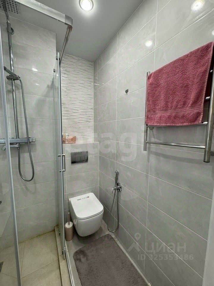 Установлены натяжные потолки и новая электрическая проводка. Сантехника обновлена, в душевой кабине смонтирован смеситель.