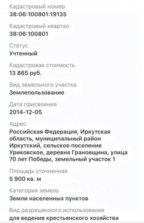 Адрес: Иркутская область, д. Грановщина, ул. 70 лет Победы, участок 1. (1-я линия).