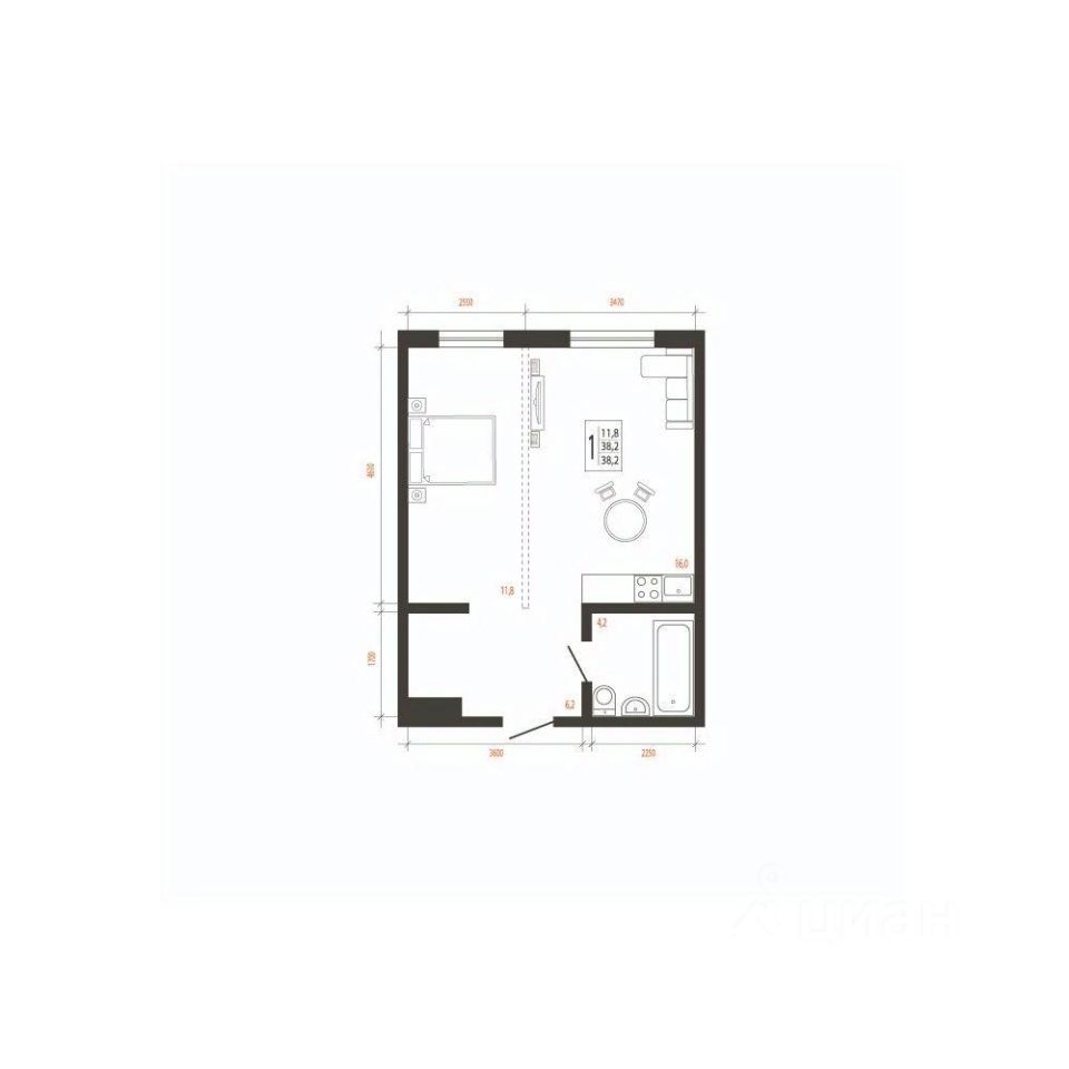 Общая площадь38,2 м2