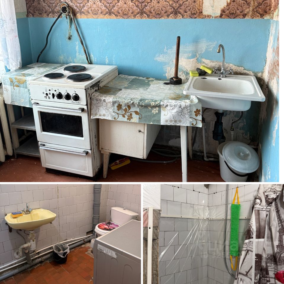 Кухня , душ и туалет общие .