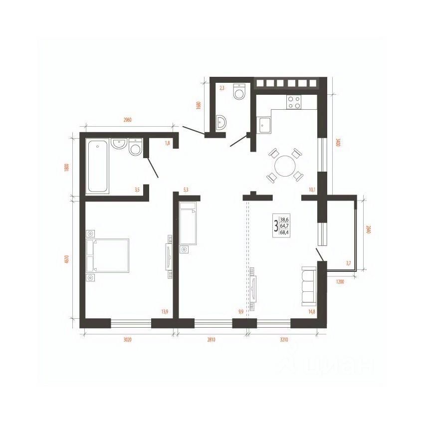 Общая площадь68,4 м2