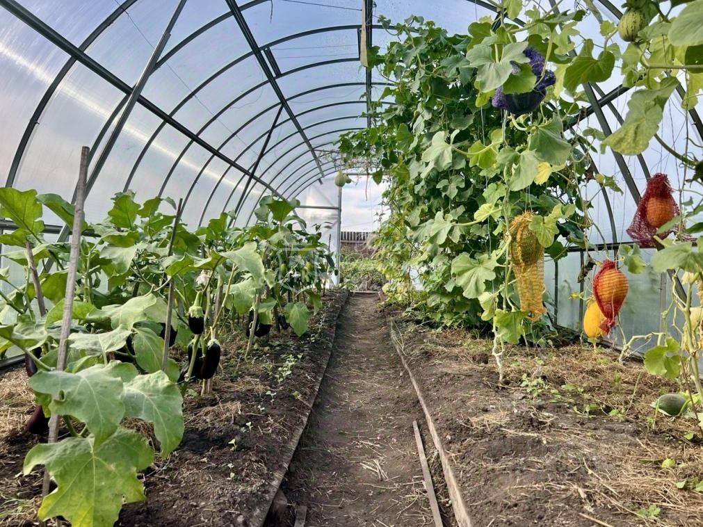 Участок: Огород с двумя теплицами (8х3), грядками и полем под картошку. Разнообразные насаждения: слива, яблоня, смородина и другие плодовые деревья. Курятник для любителей свежих яиц!