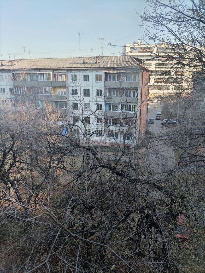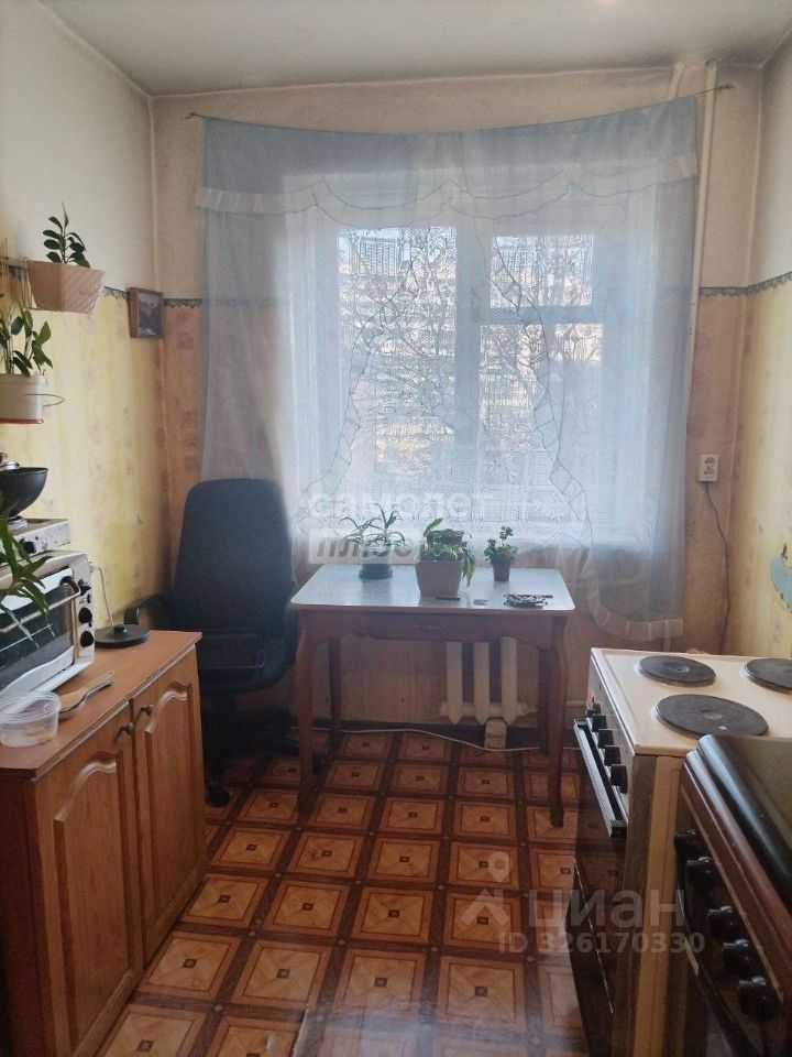 Четвертый этаж пятиэтажного панельного дома, с балконом. Балкон застеклен, выходит на зеленый двор.