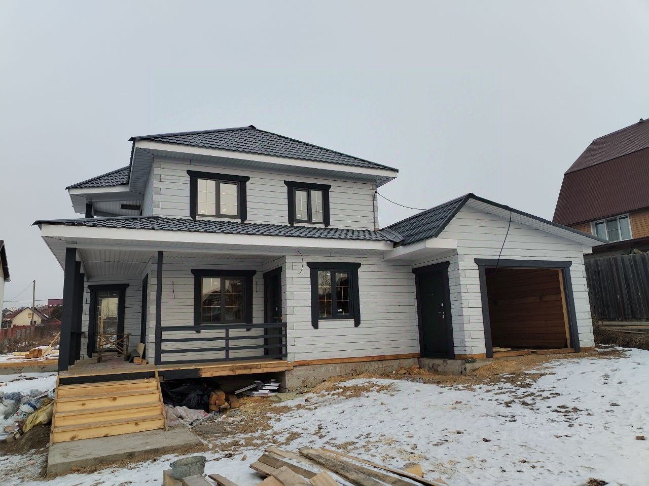 Арт. 129188021 Продам дом 160 м² из бруса с гаражом на участке 9,4 сот.(ИЖС) от Юр.лица! Действует ипотека под строительство 6% аккредитованный застройщик ! СТРОЙКА 2 месяца Дом находится в п.Маркова (Анисимово поле) Планировка: 1 этаж: тамбур , холл, кухня гостиная с эркером, комната и сан узел и большая веранда ( ГАРАЖ ) 2 этаж : холл , сан узел и три комнаты. По периметру забор и откатные ворота из профлиста , натяжные потолки , 5-ти камерные стеклопакеты , дверь с терморазрывом!Брус окрашен краской для дерева. Центральная вода, свет 15 кВт , септик 6 кубов! Отопление теплый пол по первому этажу , по второму радиаторы!