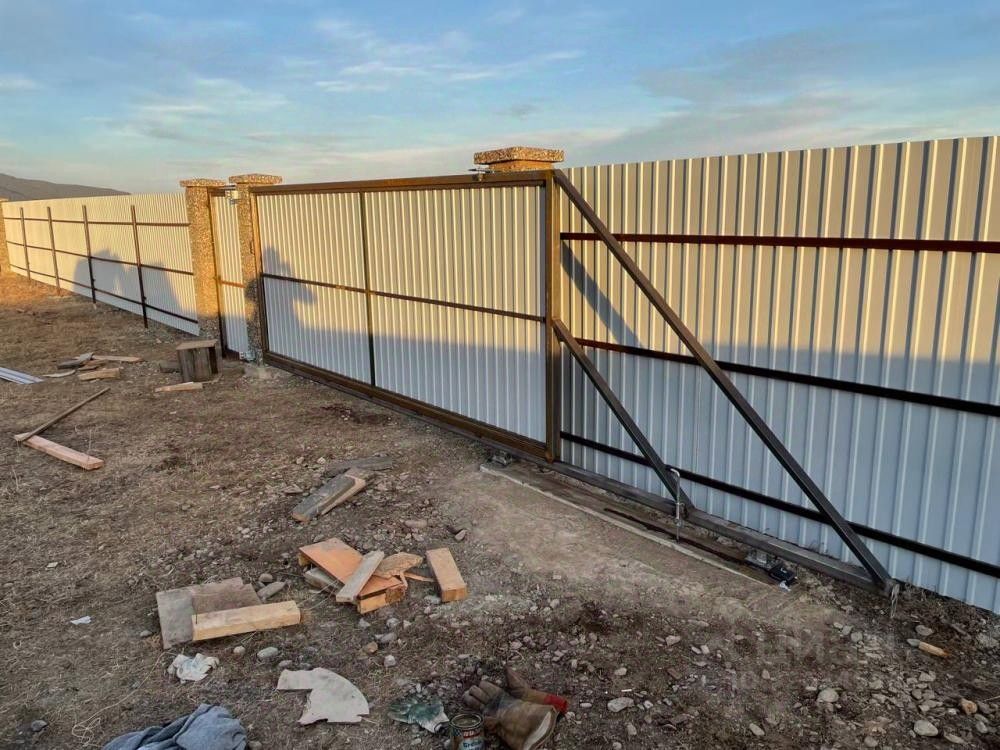 Участок прямоугольной формы, огорожен забором.