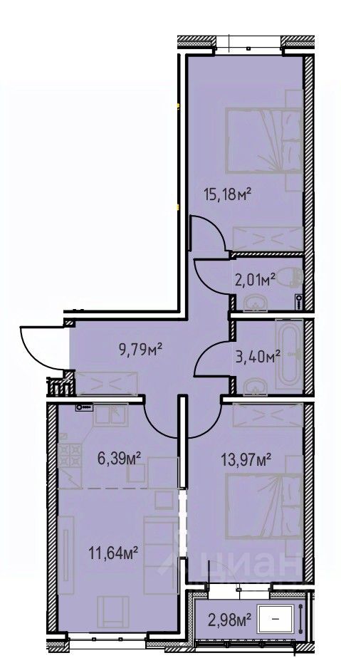 Общая площадь65,36 м2