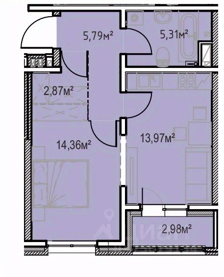 Жилая площадь14,4 м2