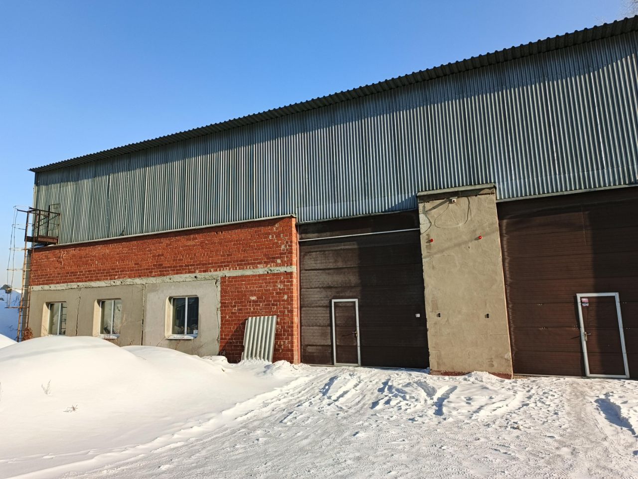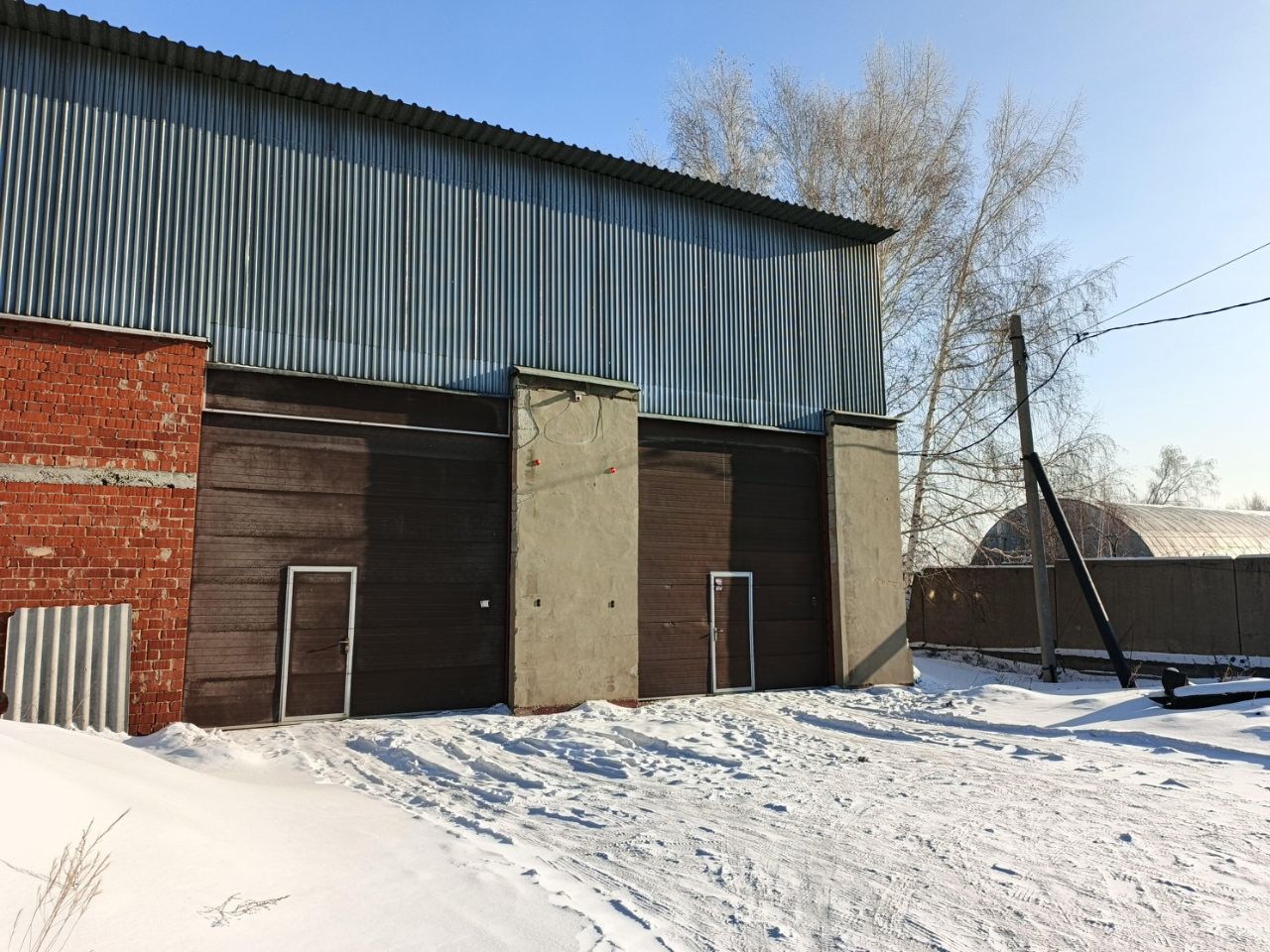Кирпичный ангар (288 м²): два гаража, второй этаж для хранения, Забетонированный пол, смотровая яма.