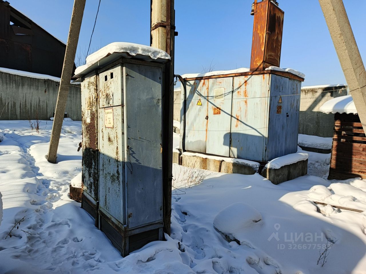 незарегистрированные постройки на въезде, частная электростанция мощностью 100 кВт (обеспечивает энергонезависимость).