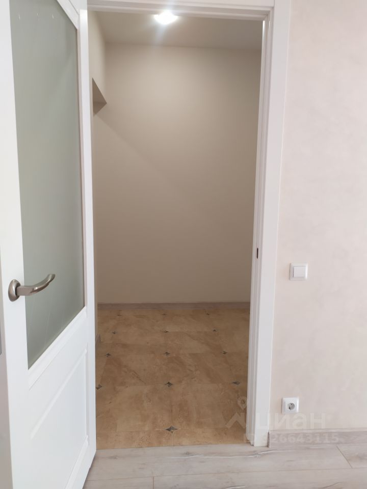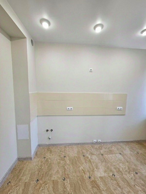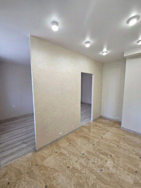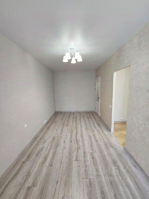 В прихожей и на кухне полы керамогранит, в комнате ламинат. Стены отделаны декоративной штукатуркой и обоями. Натяжной потолок.
