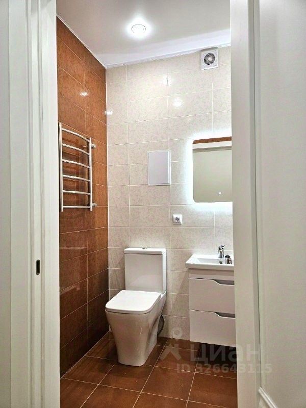 Санузел отделан кафелем, смонтирована система ''теплый пол'', заменен полностью весь санфаянс.