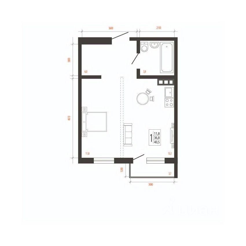 Общая площадь40,5 м2