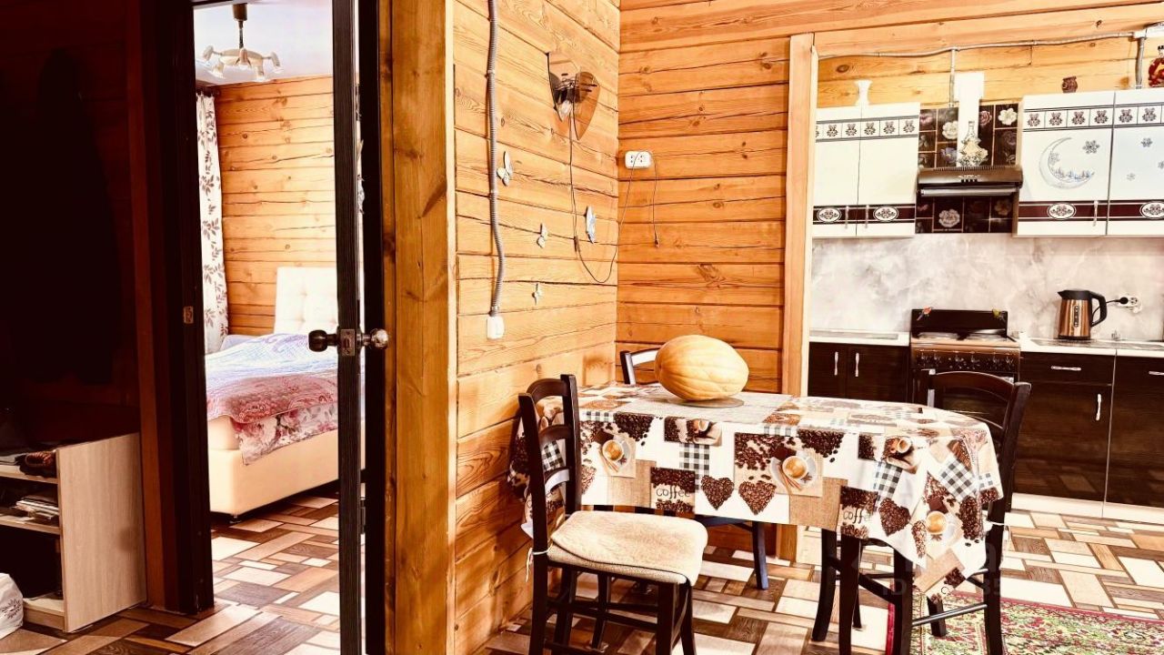 В доме три просторные комнаты, большая гостиная с кухонной зоной и балконной группой для выхода на террасу.