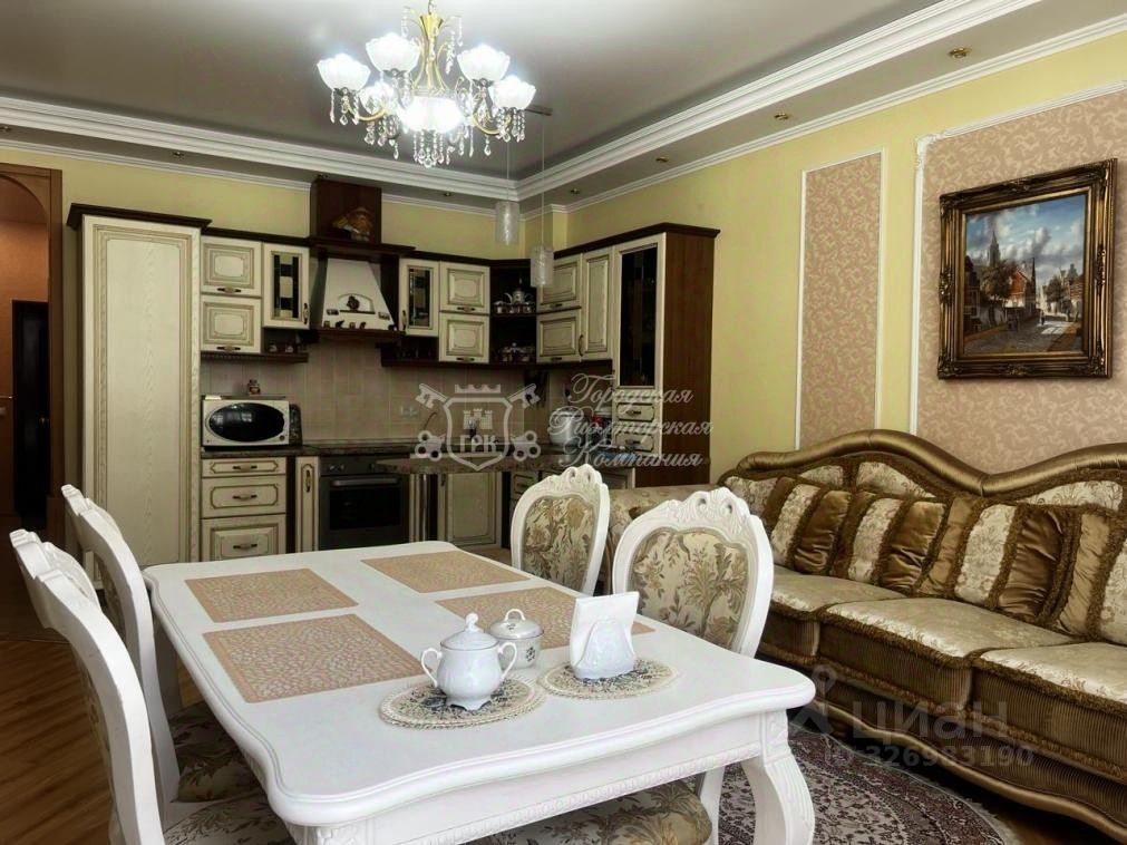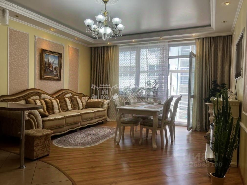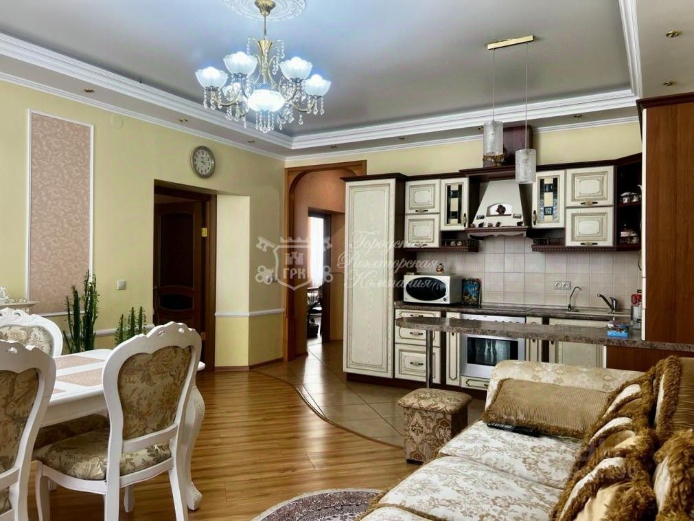 Квартира имеет продуманную планировку: жилая площадь составляет 60 квадратных метров, а кухня занимает отдельное помещение площадью 25 квадратных метров, что позволяет комфортно разместиться всей семье. Благодаря ремонту, выполненному с использованием качественных материалов, интерьер выглядит стильно и дорого. Наличие двух балконов добавляет пространству света и воздуха.