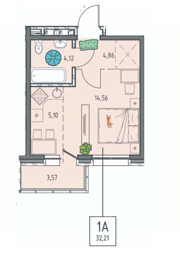 Общая площадь32,21 м2