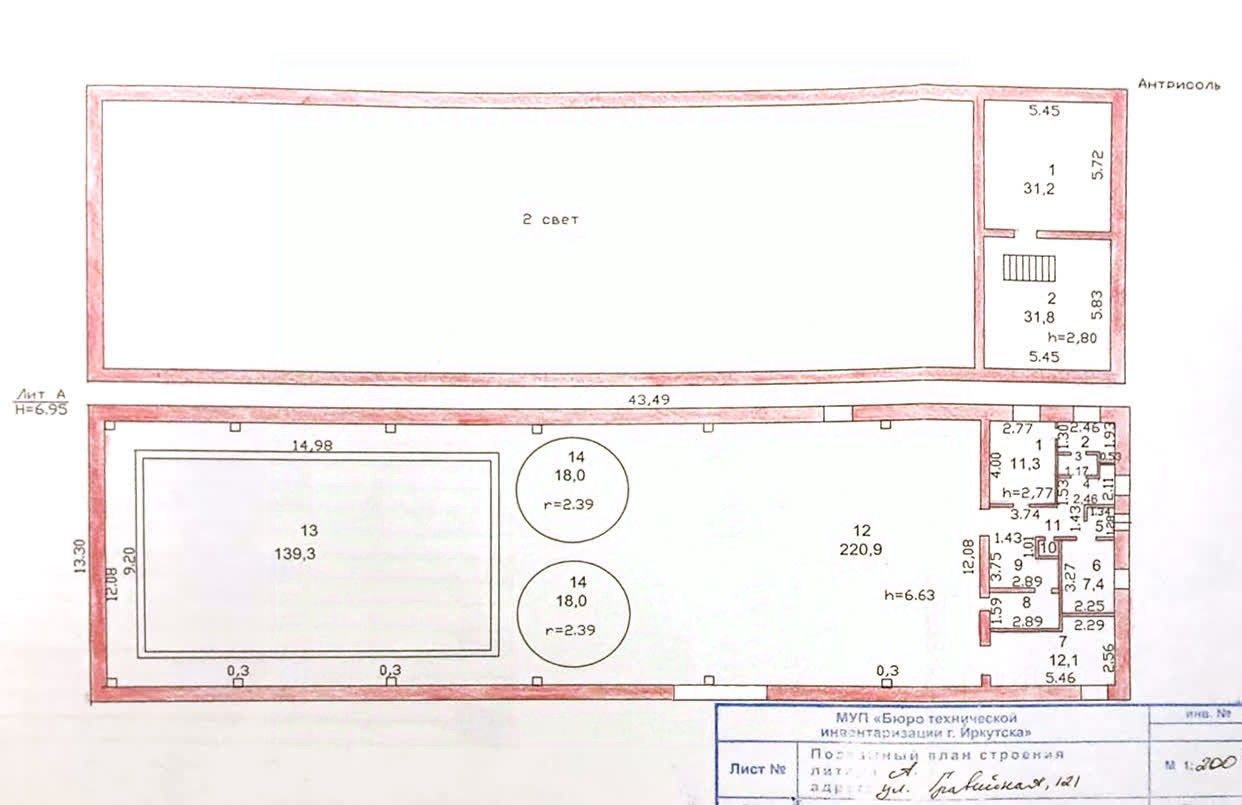 1. Основное здание Габариты: 43,4 13,3 м, высота: 6,95 м Материал: красный кирпич Площадь застройки: занимает 90% участка Год ввода в эксплуатацию: 1983 Физический износ: 13%