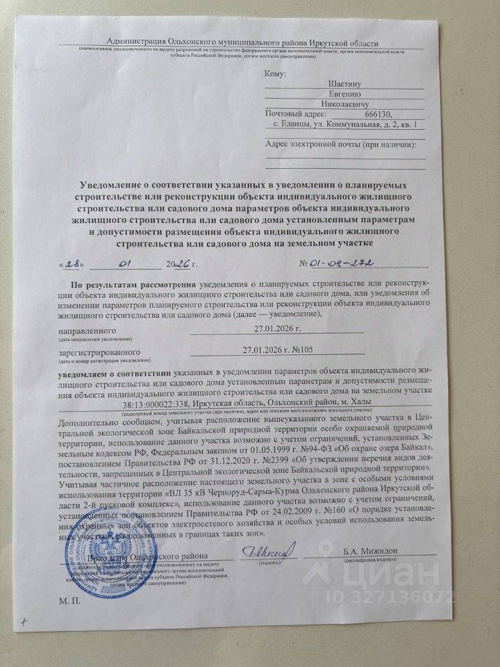 Предлагаем Вашему вниманию земельный участок площадью 22 сотки
