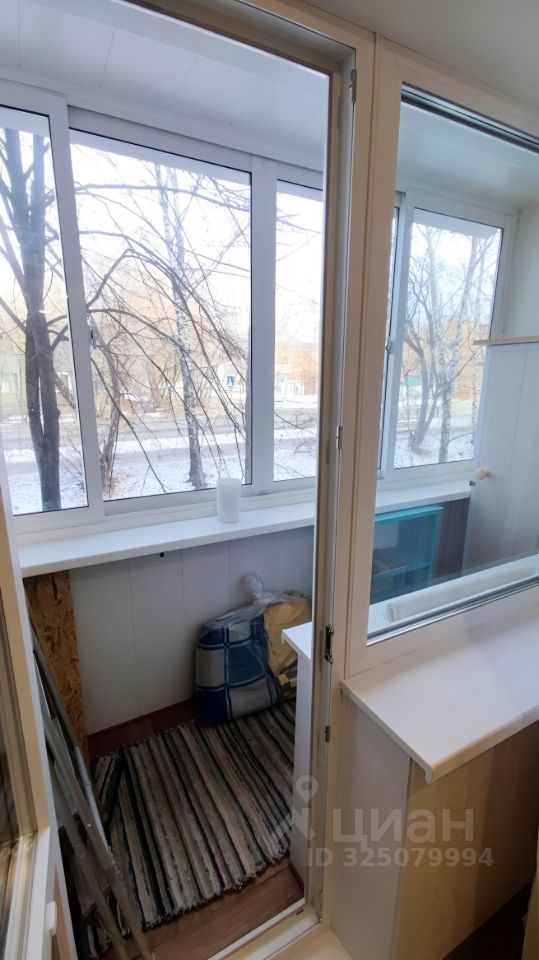 Остекленный балкон с местами для хранения.