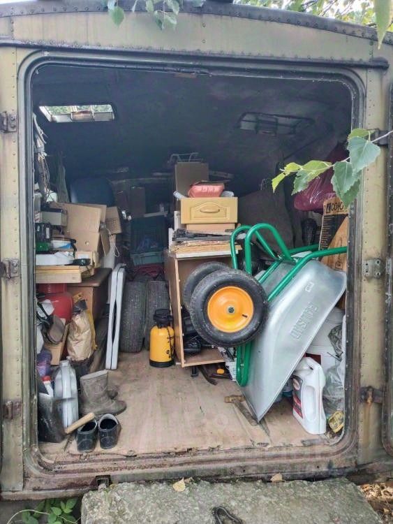 Для хранения инвентаря есть металлический вагончик, а для вашего автомобиля недостроенный гараж, который вы сможете довести до ума по своему вкусу. Летний водопровод обеспечит вас водой для полива и бытовых нужд.