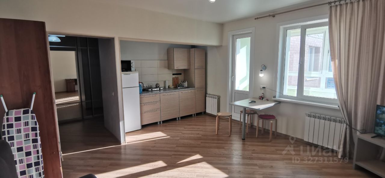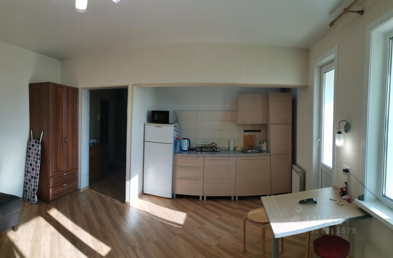 Просторная студия 32,2 кв.м с возможностью разделения кухни и комнаты, дополнительно застекленная лоджия 3,5 кв.м.