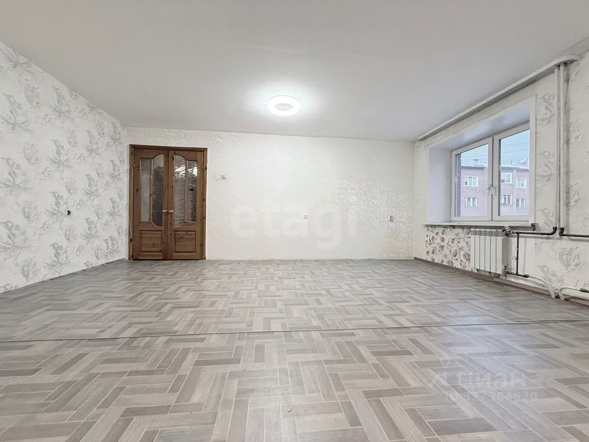 Трехкомнатная квартира площадью 102,7 кв. м расположена на третьем этаже пятиэтажного кирпичного дома в Октябрьском районе Иркутска.