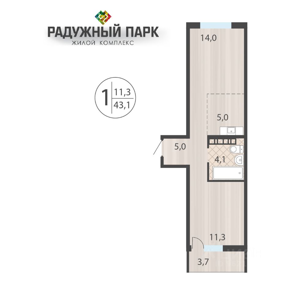 Общая площадь43,1 м2