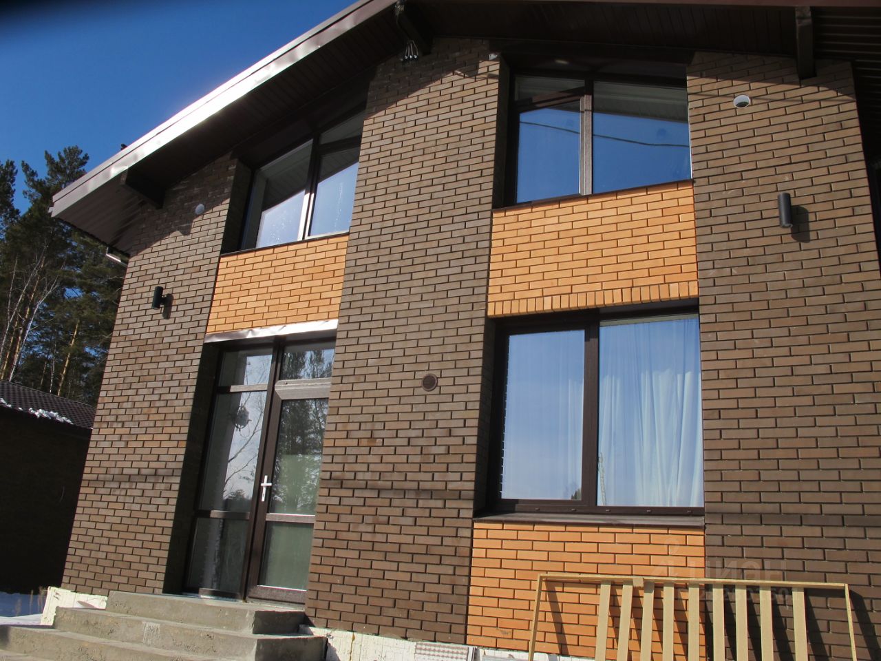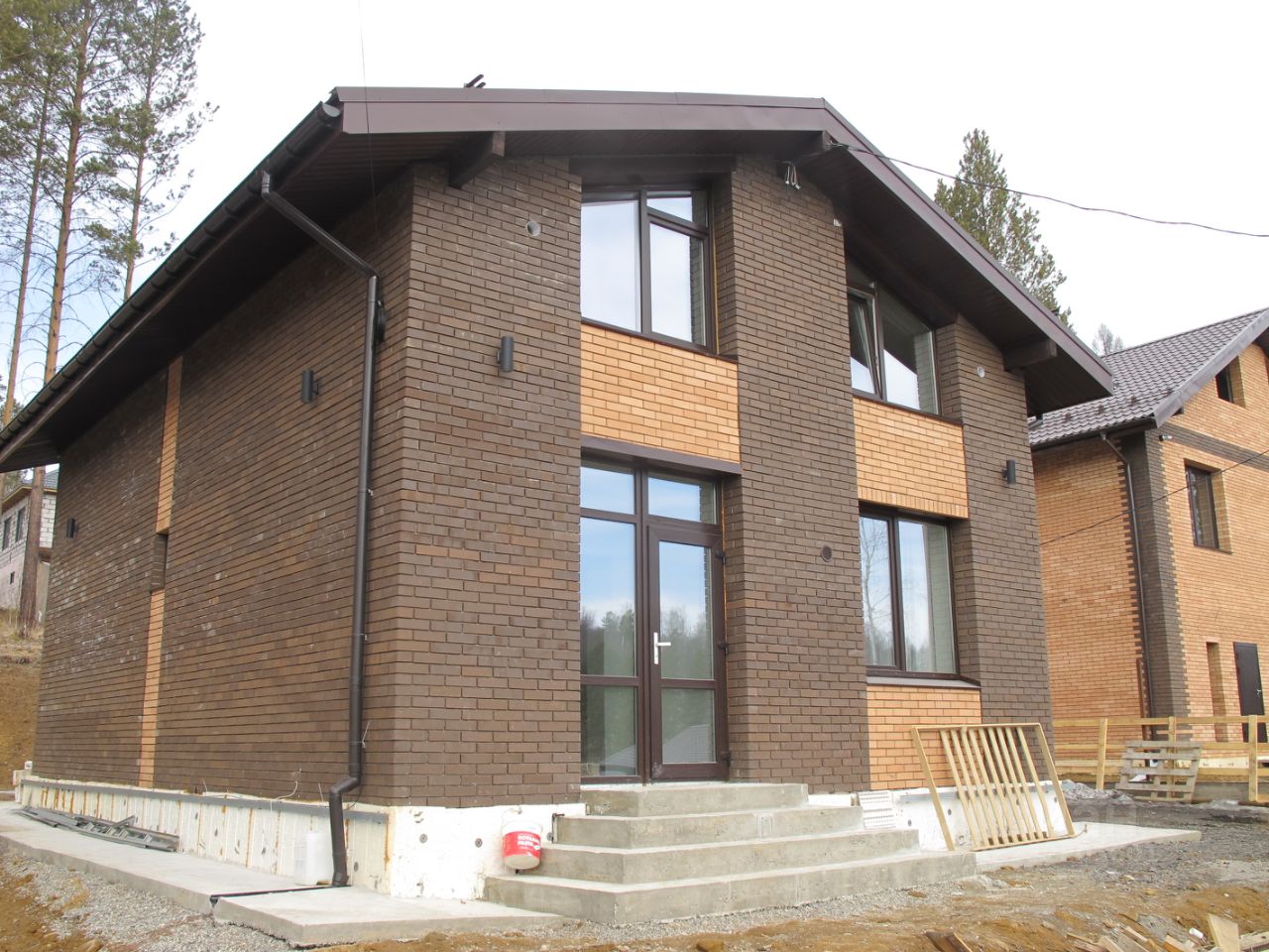 Фундамент ленточный (фундамент выполнен из бетона марки М-250, арматура диаметр 12-14 А-500, произведено армирование и гидроизоляция, сверху обшивается профлистом. Бетонная плита 300 мм. Стены: 400 мм автоклавный газобетон марки М500-600 с облицовкой 120 мм кирпич (облицовочный пустотелый 65х120х250). Красный кирпич. Между первым и мансардным этажом выполнен сейсмопояс. Перекрытия деревянные, выполнено из OSB-18-9 мм, балки металлические и лиственница 180*50*4000, согласно проекта. Окна двухкамерные стеклопакеты, металлопластик (Профиль HofmanECO 3, ECO 5. Фурнитура -Siegenia T. Стекло энергосберегающее). Кровля, утепленная минеральная базальтовая плита и металлочерепица. Высота потолков первого этажа 2,75 м. Полы ж/б плита (фундамент) (бетон М250,)
